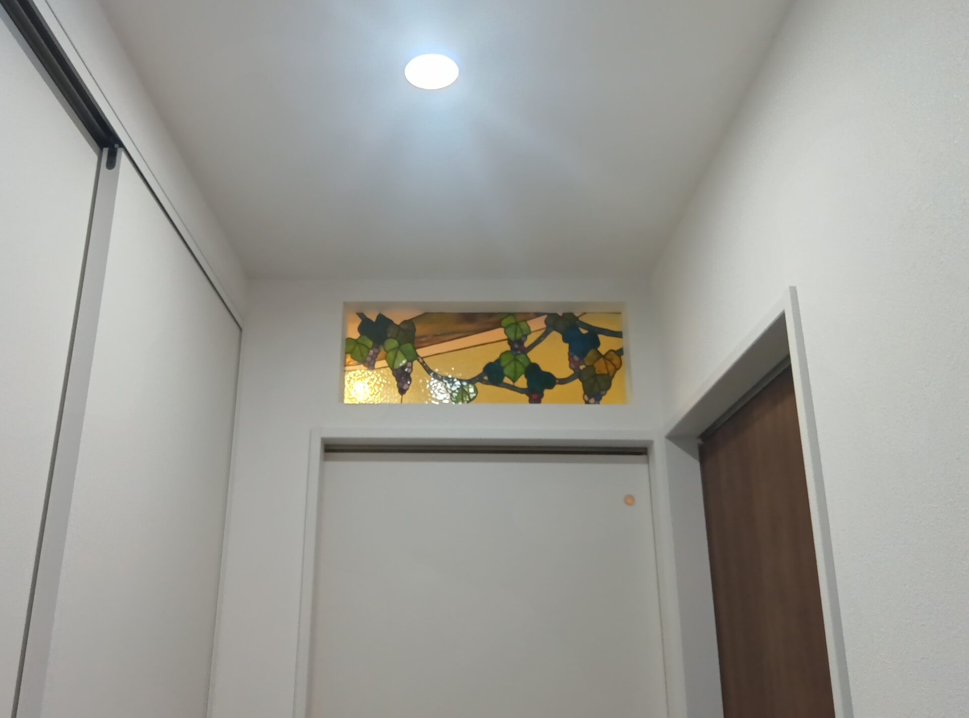 トイレの壁にあった綺麗なステンドグラス。ご友人が新築の記念に作ってくださったんだとか!明かりをつける度にキラキラと綺麗で癒されました。
