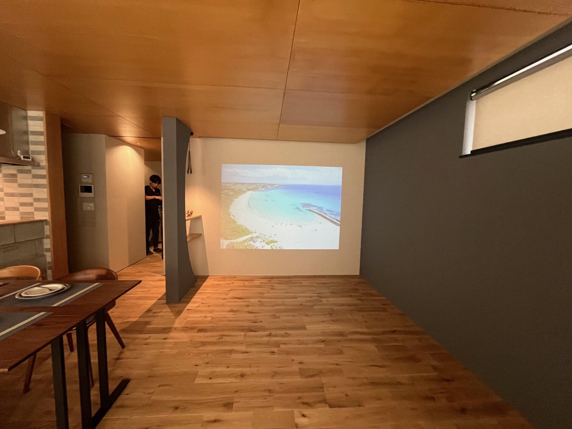 テレビはなしで、壁にプロジェクターを投影できるようにしていました。