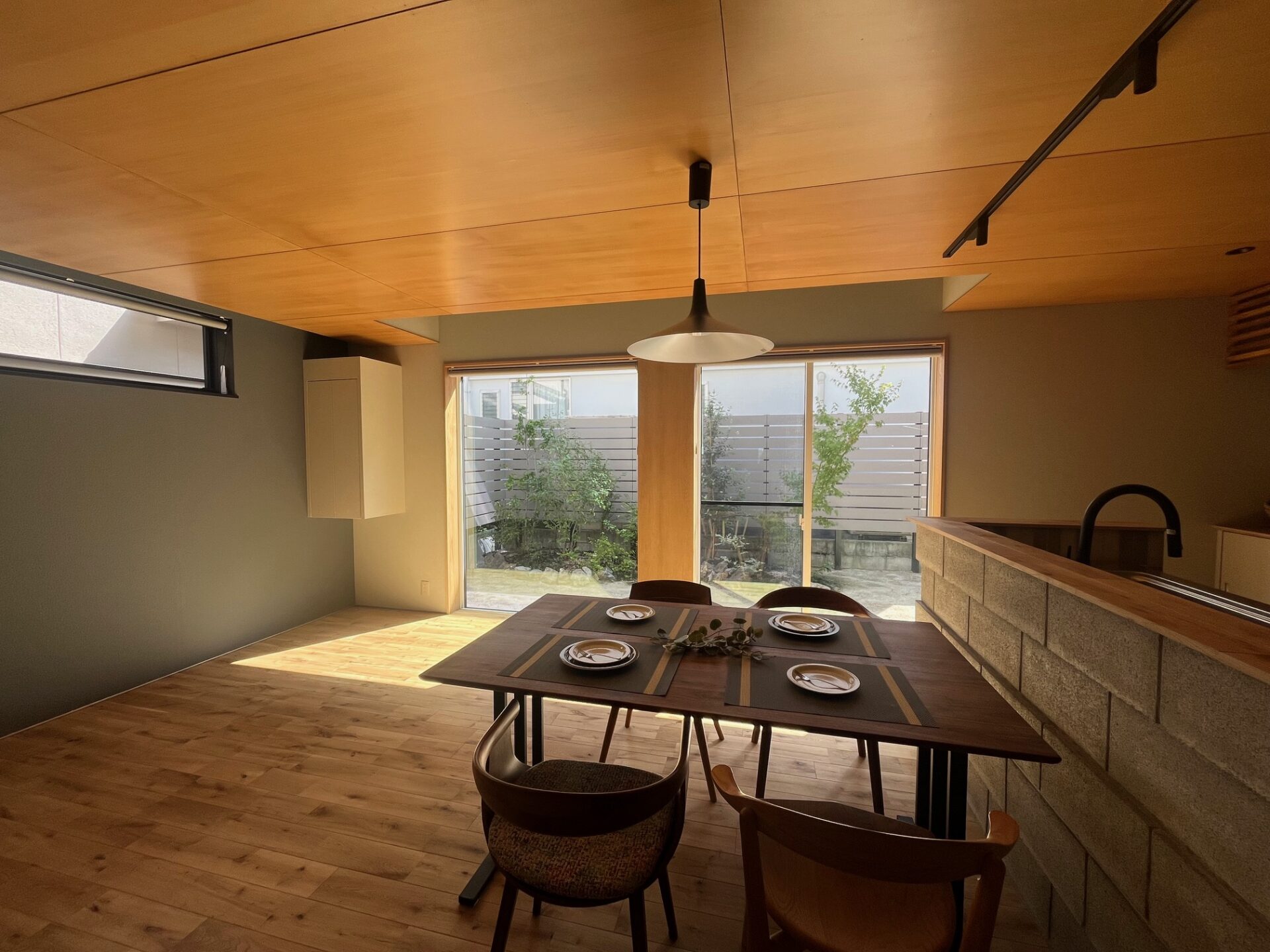 住宅密集地でありながら、設計の工夫で光を取り込みます。全体的にグレイッシュで落ち着いたカッコいい雰囲気です。