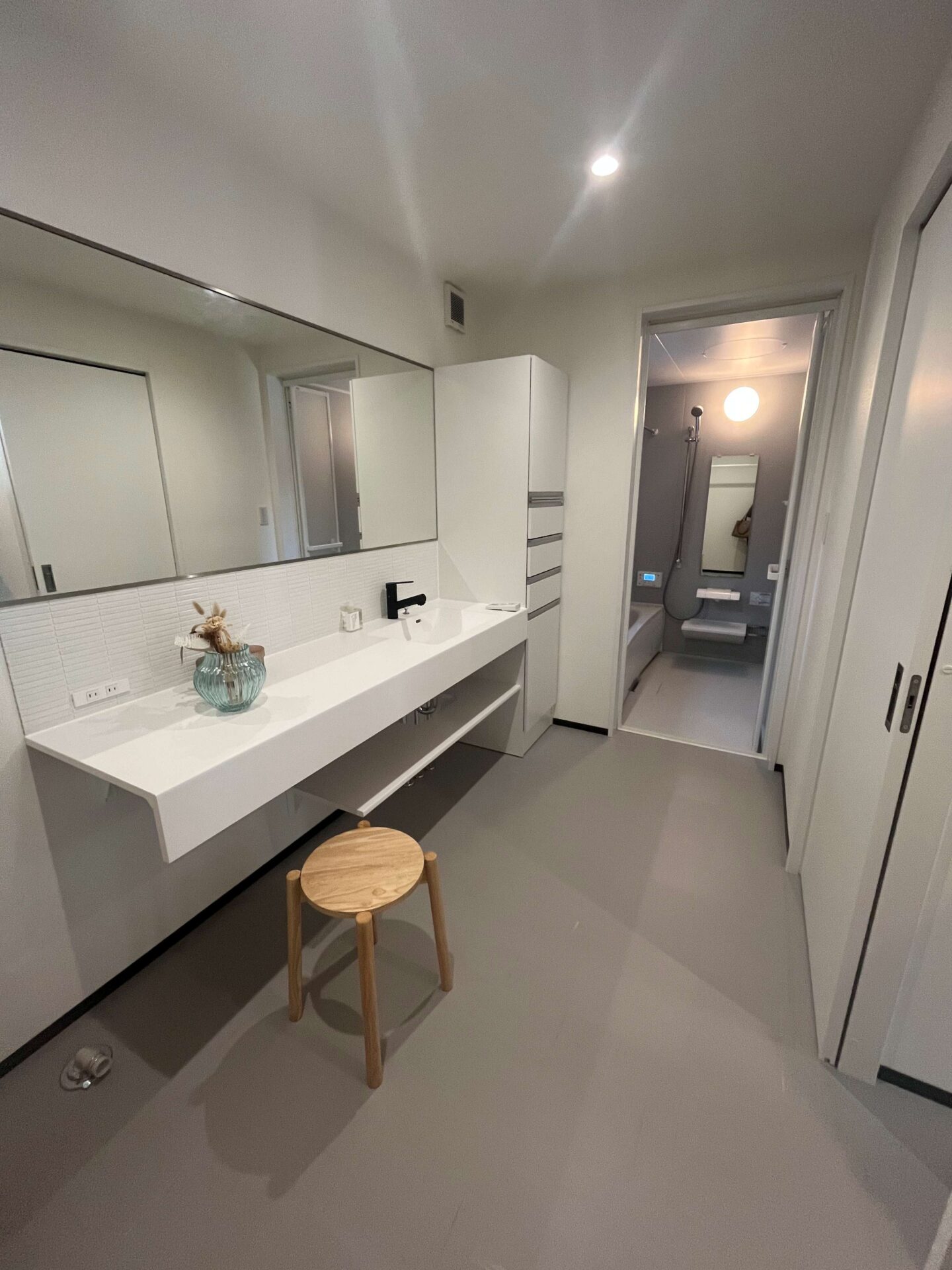 おしゃれさと機能性を兼ね備えるアイカ工業の造作洗面台。