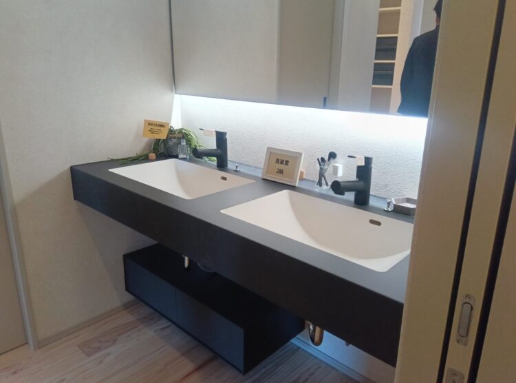 なんと洗面は贅沢に2台横並び!お子様が多いご家庭だと、朝の支度がバタバタしてしまうこともありますが、これだと順番待ちにならず余裕をもって準備できそう^^