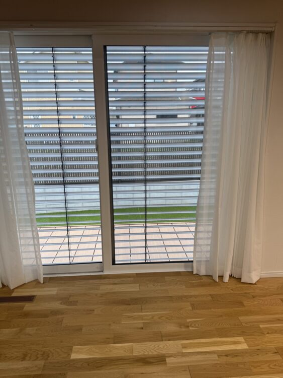 今回、サンエム建設さん初の試みとして、自動ブラインド(ドイツ製ヴァレーマ)が採用されていました!季節や時間帯に合わせて自動で開閉してくれるため、快適性はもちろん、エネルギー効率の面でも大きなメリットがあるとのこと。