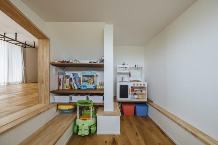 本でも掲載したリビング横(階段下)のヌックは大人が入ってもゆったり座れる高さがあり、お子様と一緒に遊ぶことのできる隠れ家スペースです。これなら急なお客様が来てもおもちゃが散乱なんてことも避けられますね^^