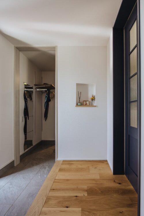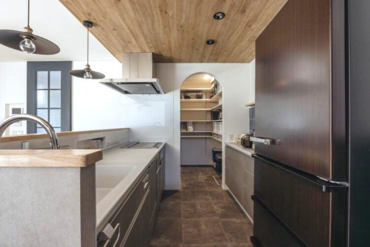玄関に入ると左手にシューズクロークがあり、そのままパントリーに繋がっていて・・・