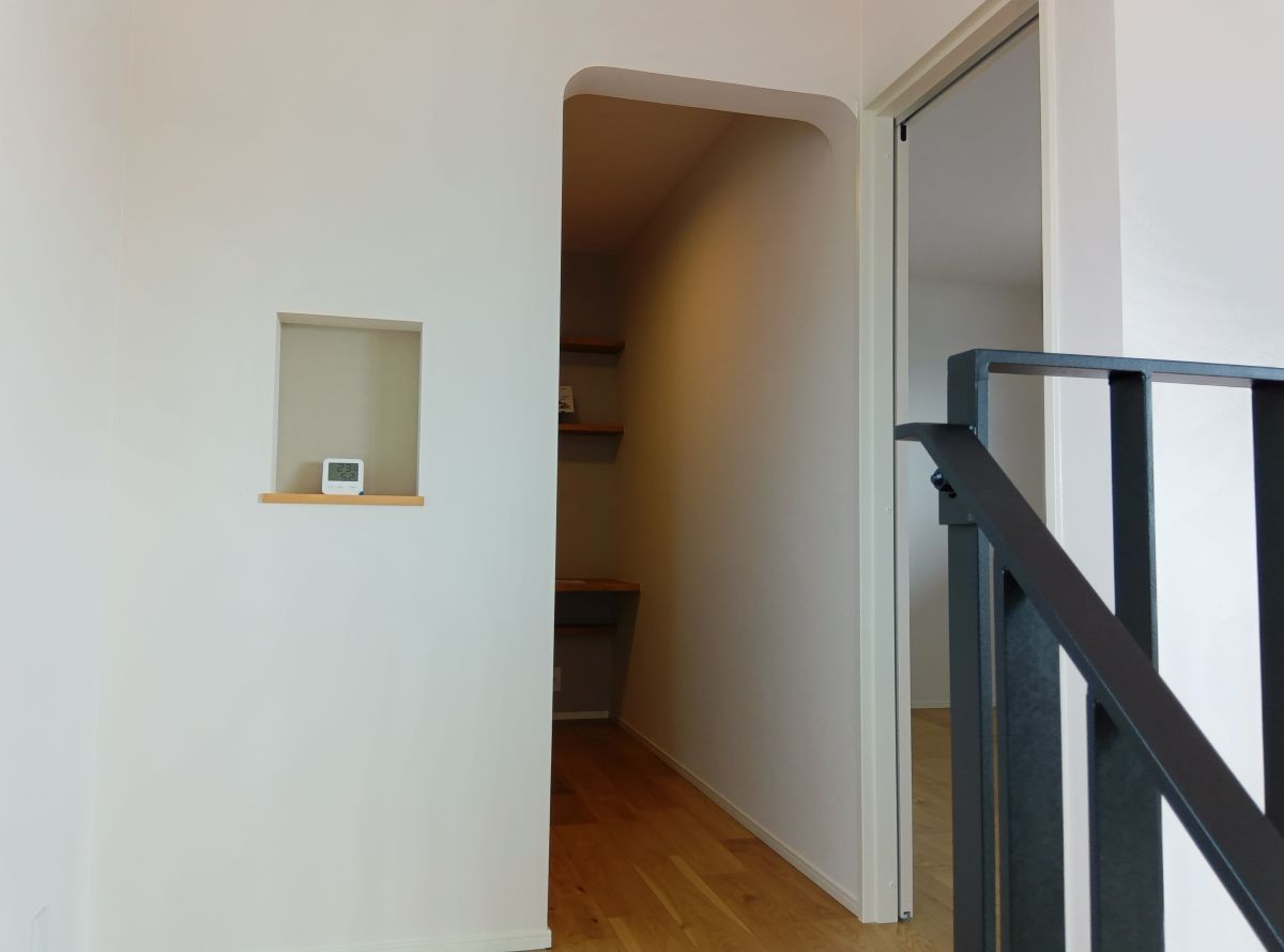 二階に上がっても熱籠りは感じない。目の前のニッチには「ちょこんと」温度計。