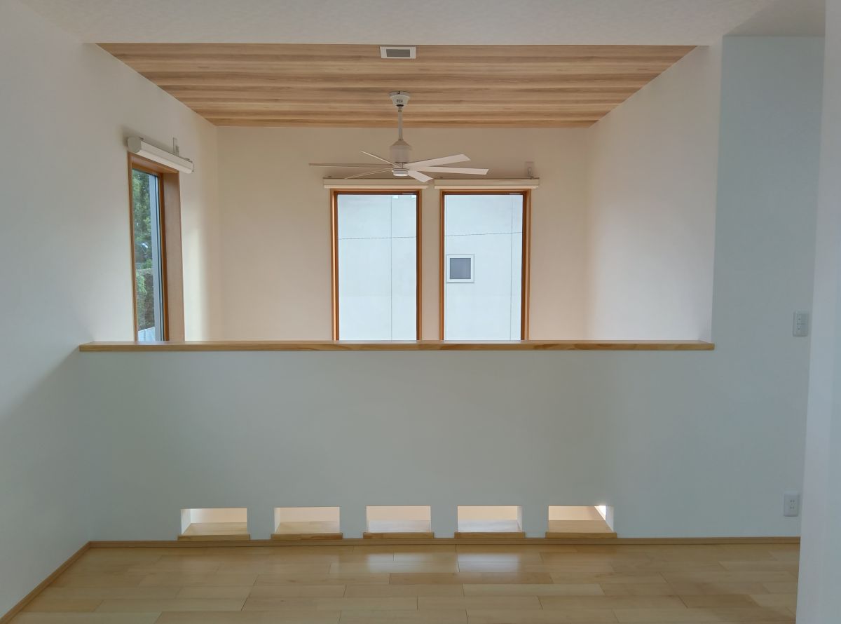 2階の吹き抜け側には、セカンドリビングともいえる大きな空間がありました。あえて仕切らないことで、子供の成長と共に家をカスタマイズしていくことを選ばれた施主様。ご自宅のプランは、ご主人のプランをほぼ、そのまま再現しております。これも企業によって対応の幅は変わってきますが、社長はご主人の意向を最大限に組んで下さり、見事形にして下さいました!