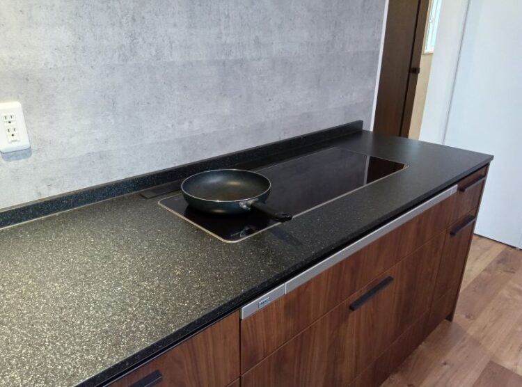 こちらのコンロなんと横並びの4口タイプ!!ってすごくないですか?お目にかかったことが無かったのでびっくりしてしまいました。