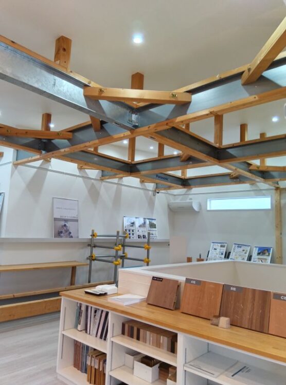 その名もテクノストラクチャー工法。大開口で広々開放感のある空間にできるのは、↑独自の梁により、高い耐震性と設計の自由度が実現されているそうです。