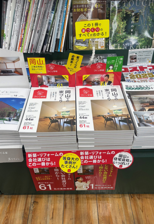 7/18発行の『岡山での家づくり』vol.17。発売から3か月が経過しました。書店の売り場へ行き、「お~売れてる~♪」と一人でニヤニヤ。おかげさまで家づくりを検討されている方が手に取ってくださっているようです。感謝感謝^^