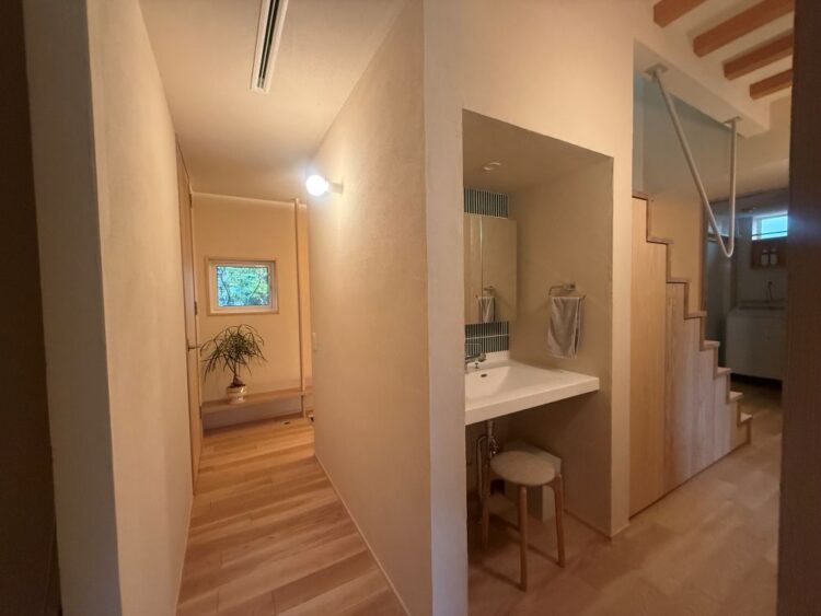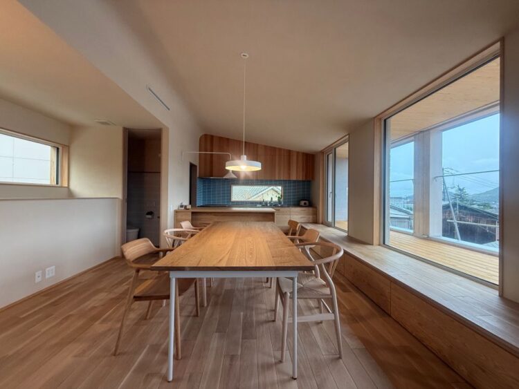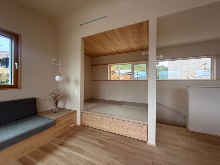 2階のリビングには小上がりの畳スペースもあり、とても落ち着きます。和の雰囲気だけでなく、家全体に木をふんだんに使った空気感がより一層心地よく感じさせてくれるのかもしれません。環境に負担がかからない、日々触れるものが心地よく、お手入れしながら長く愛着を持って暮らせる。そんな家づくりを目指しておられることを実際に体感しお話をお伺いさせていただくことができ、とても感激いたしました。外には地域の方も縁側のように休憩できるスペースも設けられ、地域に根差して、地元の方とのより良い関係と家づくりを目指しておられるお気持ちに触れることができました。この度はお忙しい中、お邪魔させていただきありがとうございました。