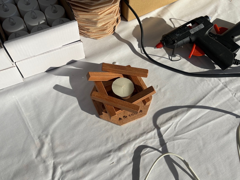 「大人も子供も気軽に、災害時にも使えるキャンドルスタンドづくり」ということで材料は木材と土台のみ!土台にはおしゃれな焼き印もついており、私も作りたくなりました^^見本のキャンドルスタンドを見ると、お子様だけではなく、大人の方も「やってみたい!」となり大人の参加者も多かったです。(嬉しい~♪)