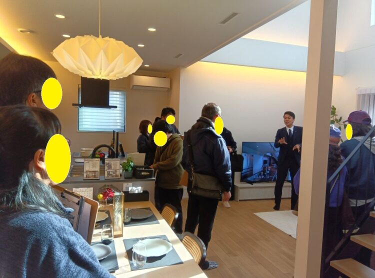 あえてのZEH基準のお家へご訪問させていただきました。各社がモデルハウスで体感させていただく中、こちらは等身大の建売住宅での体感をさせていただきました。動線の取り方やお部屋の広さの感覚も知っていただくとともに、違いの分かる貴重な体感となりました。ご参加の方も、実際のお家の動線に、「キッチンすぐってらくちん!!」などとお話しされていらっしゃいました。こちらの企業様は株式会社ミナモト建築工房様。ご予算やご希望に臨機応変にご対応いただける頼もしい住宅会社様です。次はぜひ断熱等級6、C値は0.26のお家へお出かけいただき、ミナモト建築工房様の高断熱、高気密の住宅をご体感してみていただきたいです。