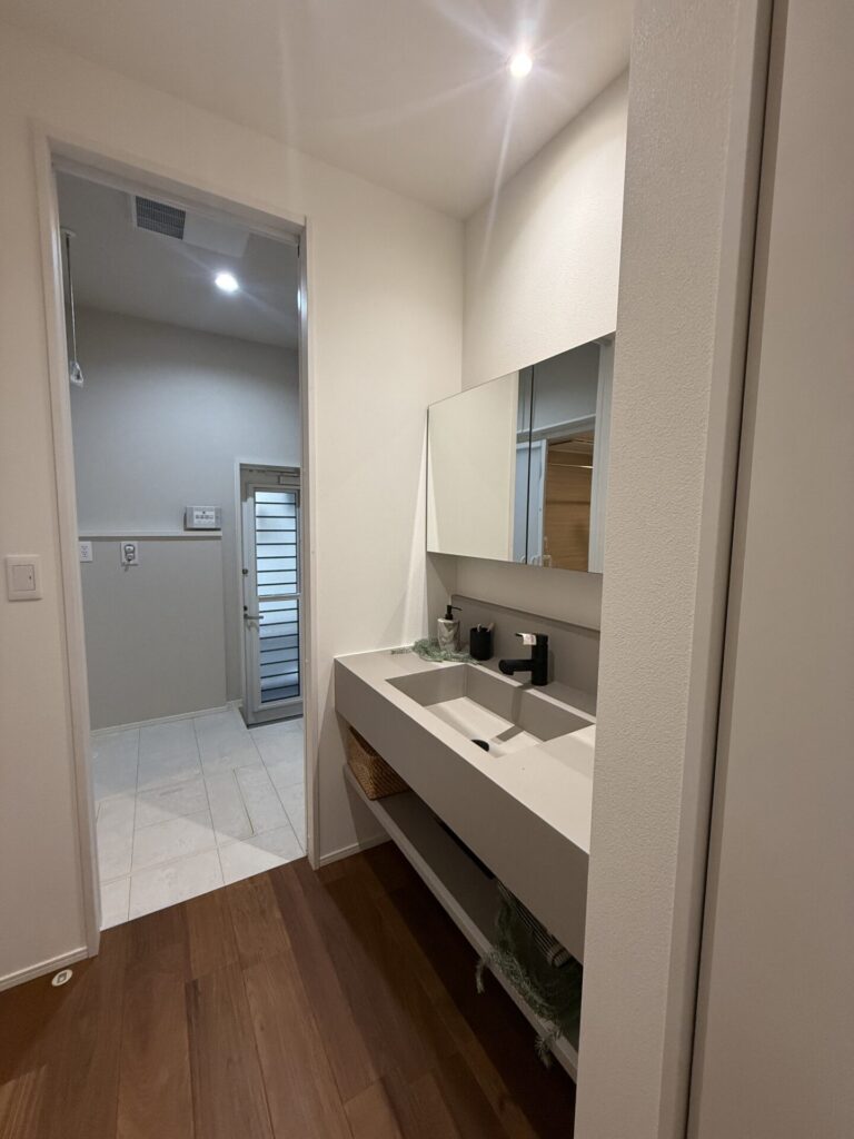モデルハウスって参考にならない大きさだと、自分たちの家づくりのためにならなかったりしますが、ライフデザイン・カバヤさんのモデルはリアルサイズでかつ行き止まりがない動線で、生活のイメージがしやすかったです!洗面はお風呂からもトイレからも玄関からも行きやすいちょうどいい位置にあって、こういう間取りもありだね~と参考になりました^^