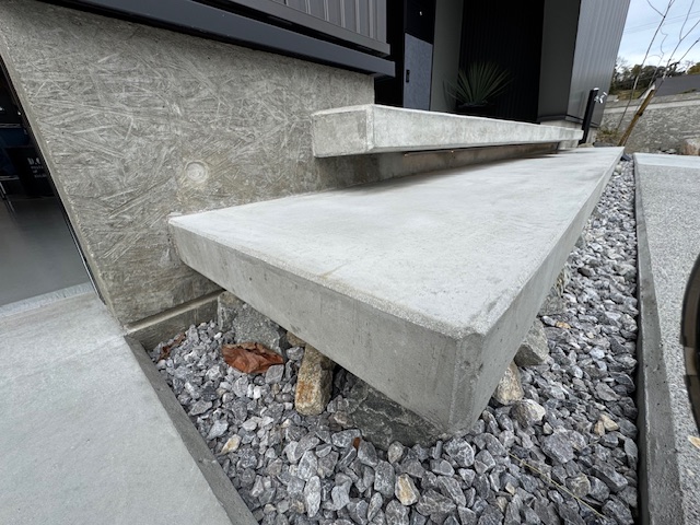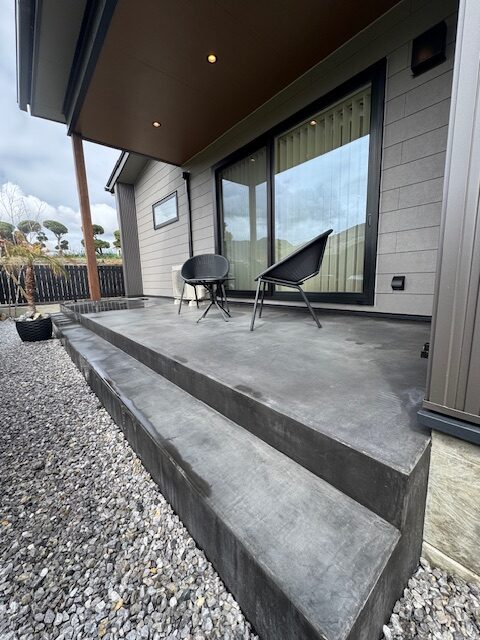 アプローチからテラスまで見事な仕上がり✨ 玄関前のポーチは一発撃ち仕上げ❣ なので美しいし強度も抜群(*^-^*)