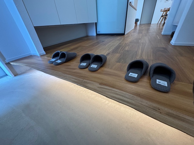 家の大きさは28坪とコンパクトながらも回遊同線の効いた家事楽動線✨ 玄関に入るとまずは造作感たっぷりの1枚板の造作エントランス( *´艸`)✨ 玄関入って思わずパチリ📷✨