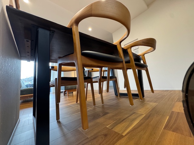 ダイニング~キッチン周りを見渡すと、主婦(夫)さんおお喜びのチェアーが❣ お掃除するときにはテーブルにひっかけて持ち上げれるタイプ!これはほんとにデザイン賞!ですよね。暮らし方のその先まで盛り込まれています…